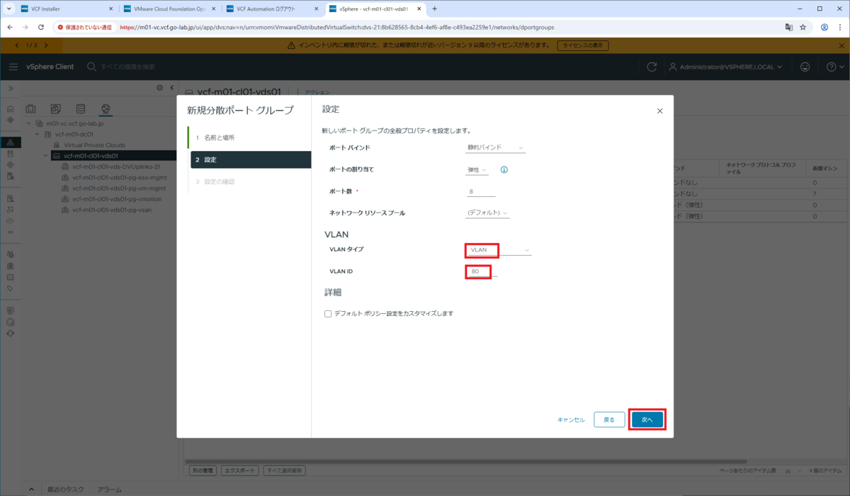 - 名前:vcf-m01-cl01-vds01-pg-vlan80