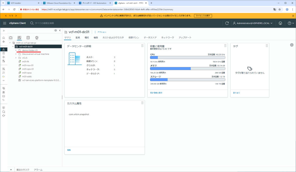 今回は、VCF Automation に管理ドメインを登録する想定で事前準備します。